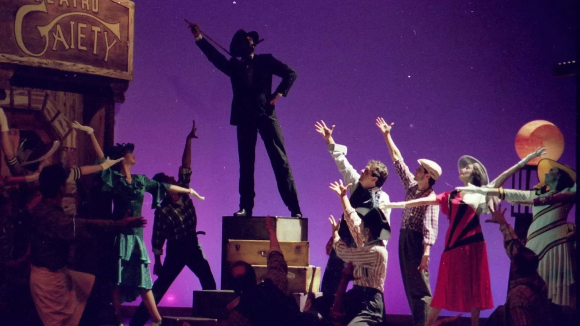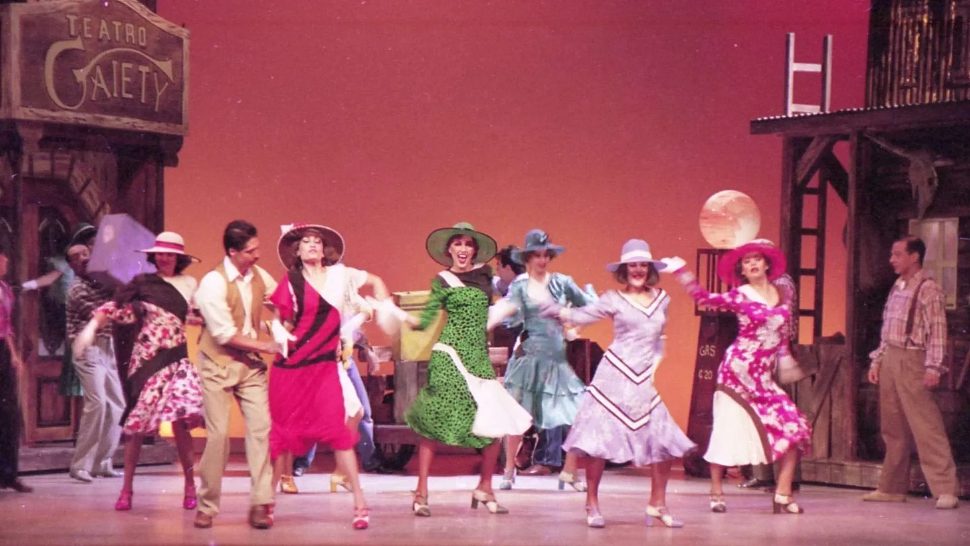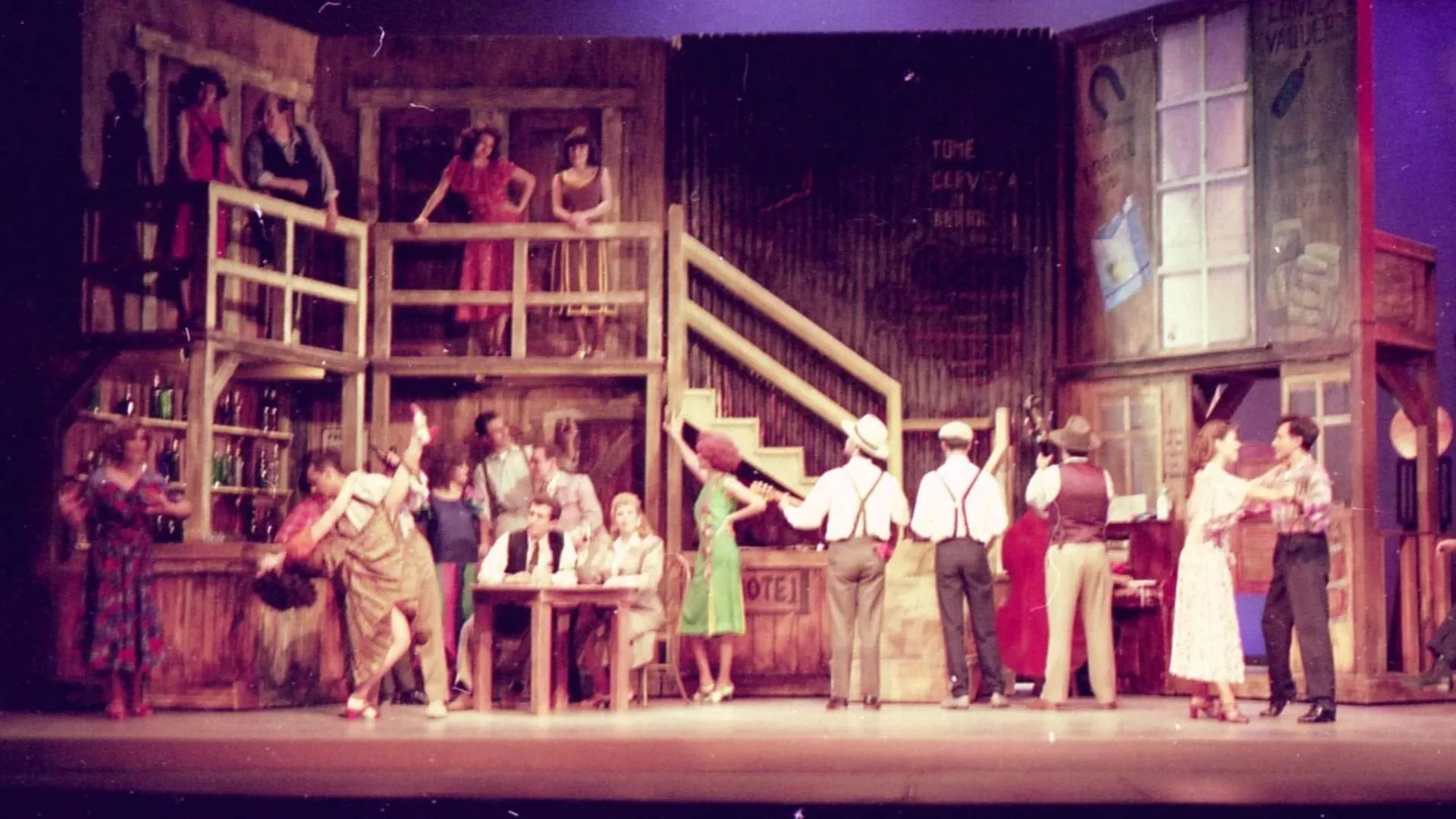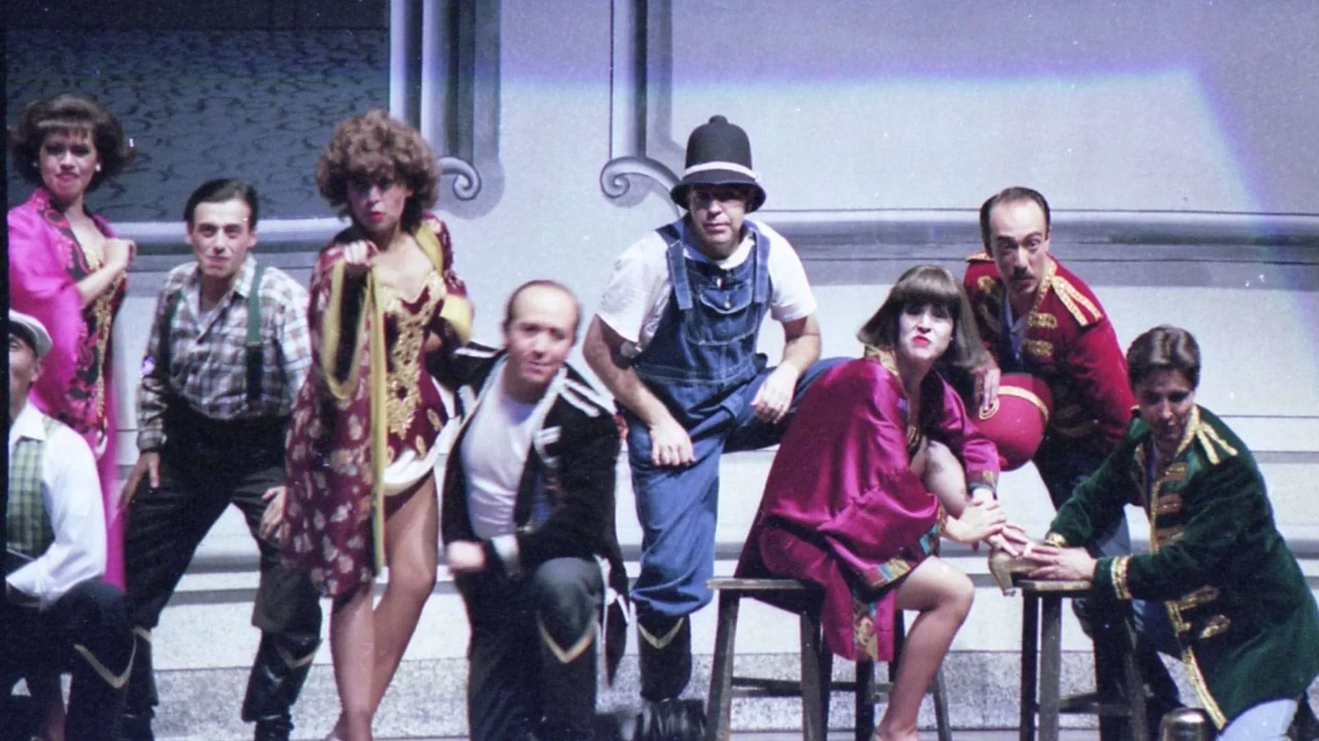 El reto más complicado fue el plato de minero sobre el que se bailaba tap en el número *Tengo ritmo*: debía verse bien, sonar bien y resistirlo todo. Finalmente nos lo fabricó un señor que hacía ollas de presión; tenía que ser liviano pero resistente, pues los hombres bailaban encima y las mujeres lo utilizaban como pandero. Muchas cosas las conseguimos en mercados locales, como las sillas para *Stiff Upper Lip*. Era teatro hecho con ingenio, precariedad y pasión, donde cada hallazgo en un puesto de mercado podía convertirse en parte del universo de la obra.
