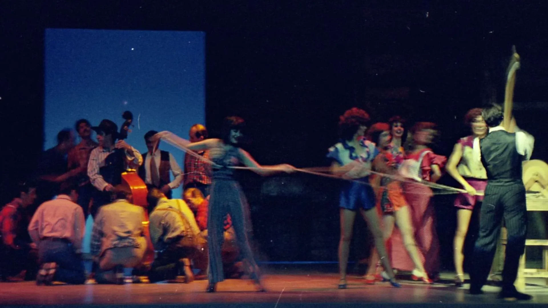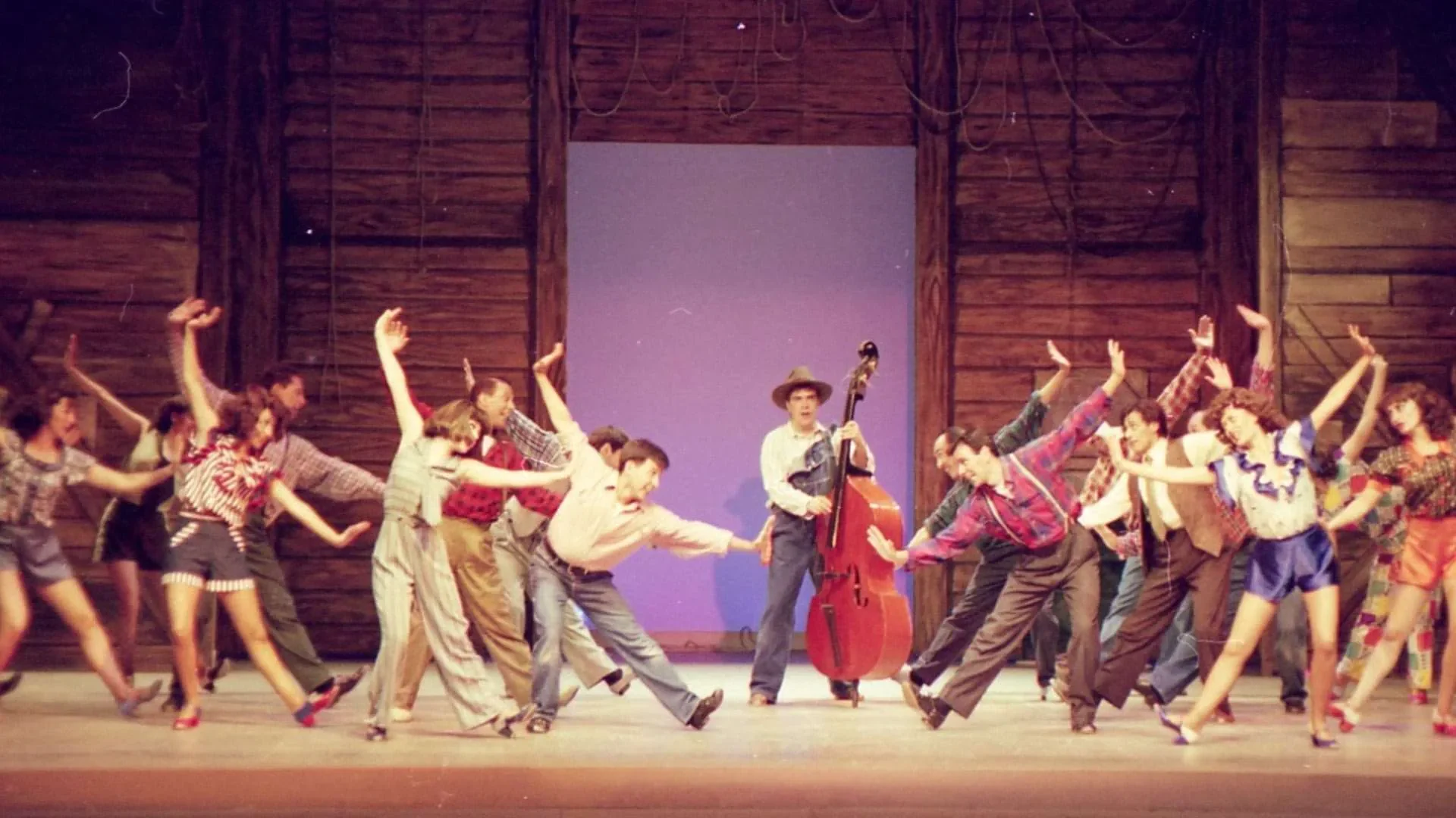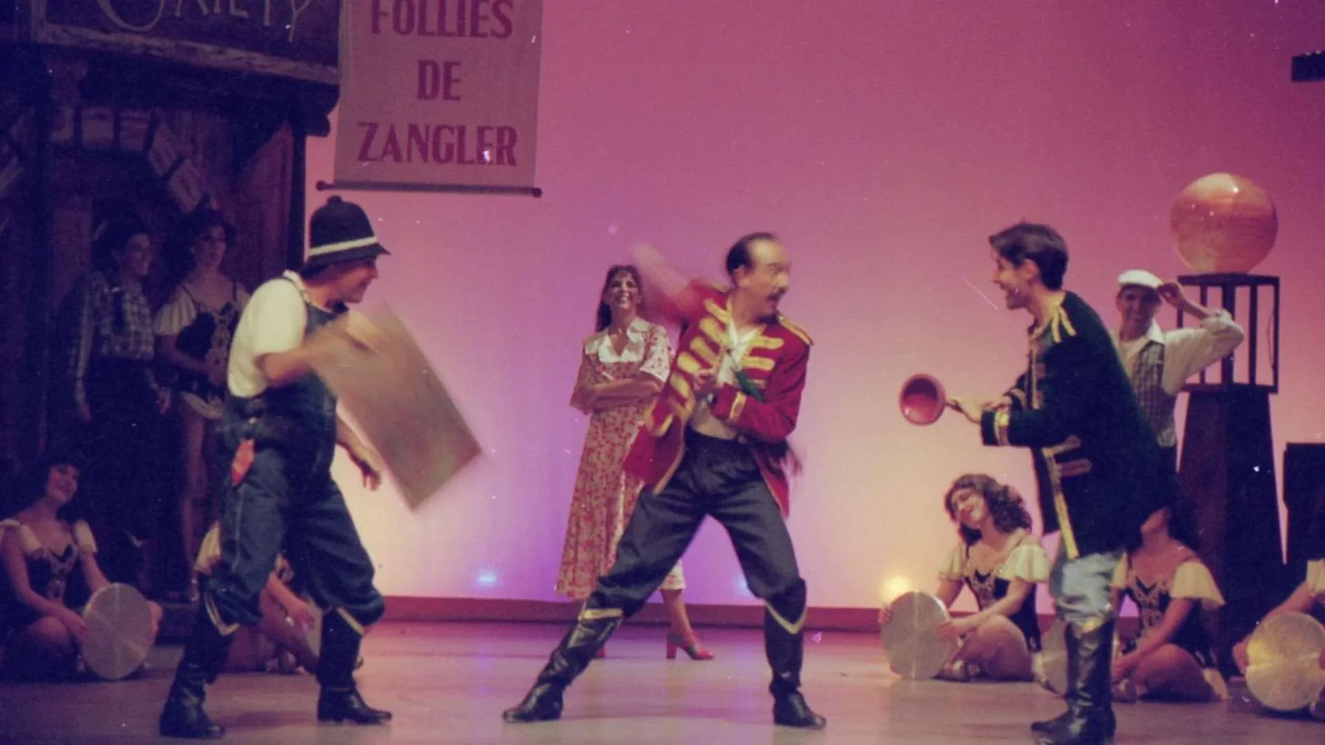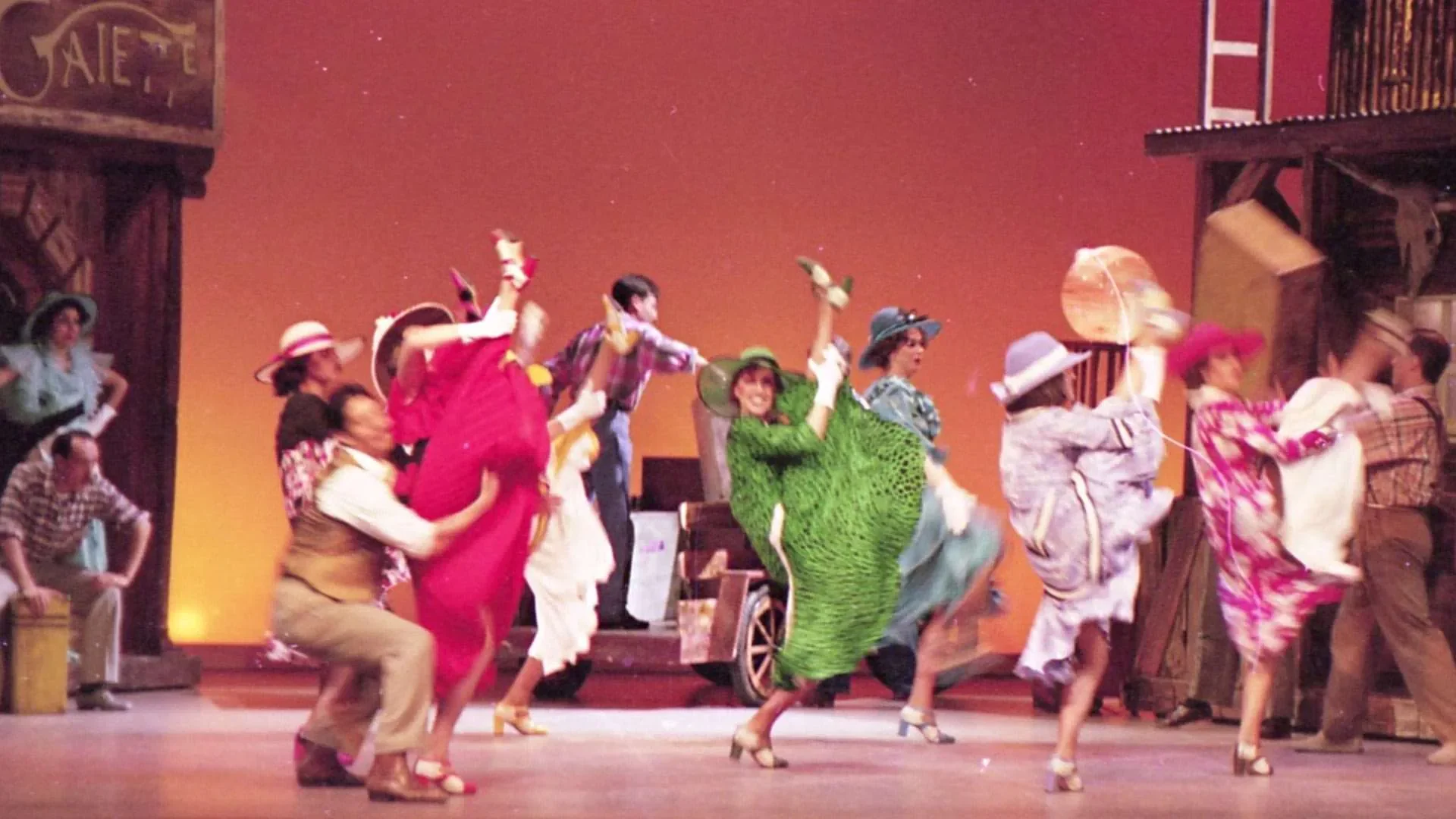 El reto más complicado fue el plato de minero sobre el que se bailaba tap en el número *Tengo ritmo*: debía verse bien, sonar bien y resistirlo todo. Finalmente nos lo fabricó un señor que hacía ollas de presión; tenía que ser liviano pero resistente, pues los hombres bailaban encima y las mujeres lo utilizaban como pandero. Muchas cosas las conseguimos en mercados locales, como las sillas para *Stiff Upper Lip*. Era teatro hecho con ingenio, precariedad y pasión, donde cada hallazgo en un puesto de mercado podía convertirse en parte del universo de la obra.